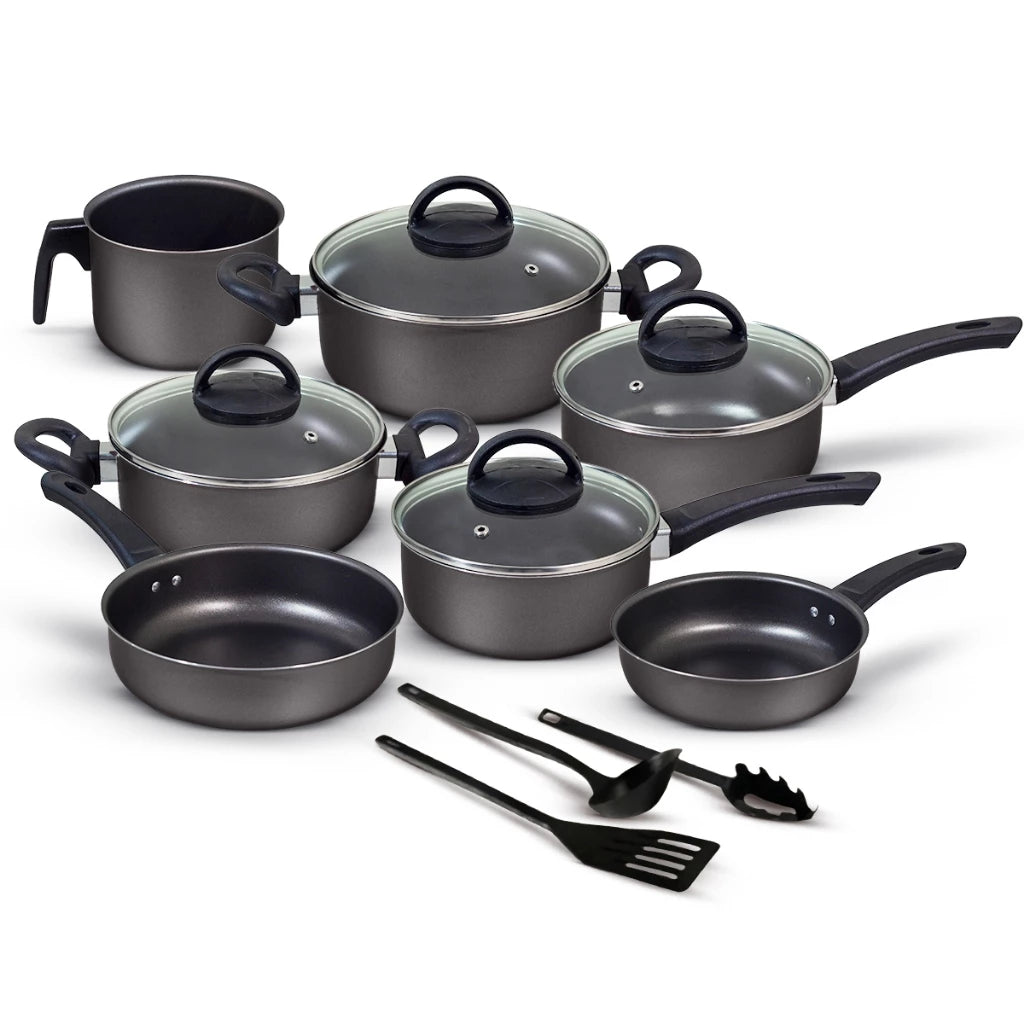 Cada panela conta com 5 camadas de revestimento antiaderente e espessura de 1,2 mm, garantindo que seus alimentos não grudem e facilitando a limpeza. Os pegadores em baquelite antitérmico oferecem segurança e conforto ao manusear o conjunto, enquanto as tampas de vidro com saída de vapor permitem acompanhar o preparo sem precisar abrir as panelas.