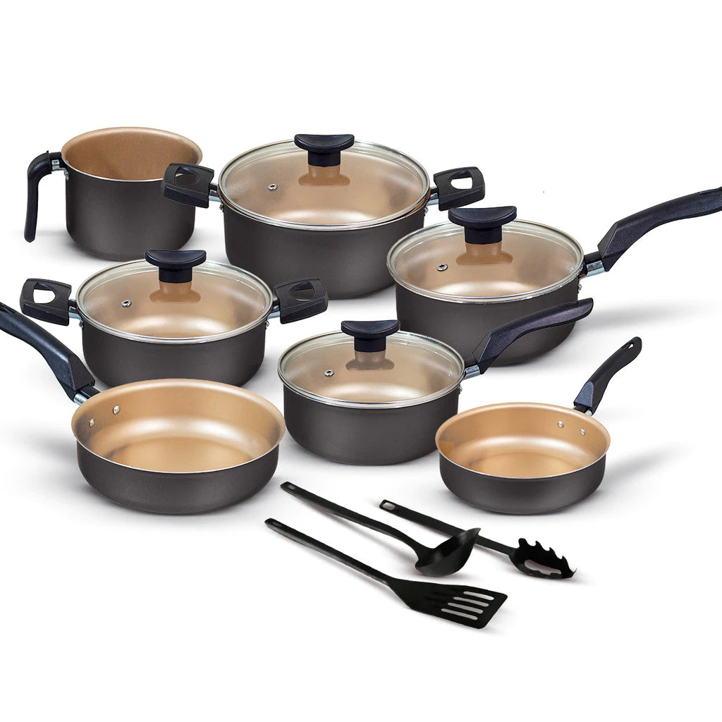 Além das panelas, o kit inclui acessórios em nylon de alta durabilidade, que ajudam a preservar o antiaderente por mais tempo. Com capacidade variada entre 1,4 L e 2,7 L, você terá peças ideais para todos os tipos de receitas: desde o arroz do dia a dia até molhos e frituras.