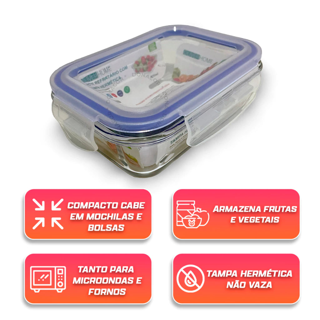 ✨ Segurança e Praticidade – Com 4 travas de fechamento e material livre de BPA, são ideais para marmitas, refeições saudáveis, lanches e armazenamento de mantimentos.