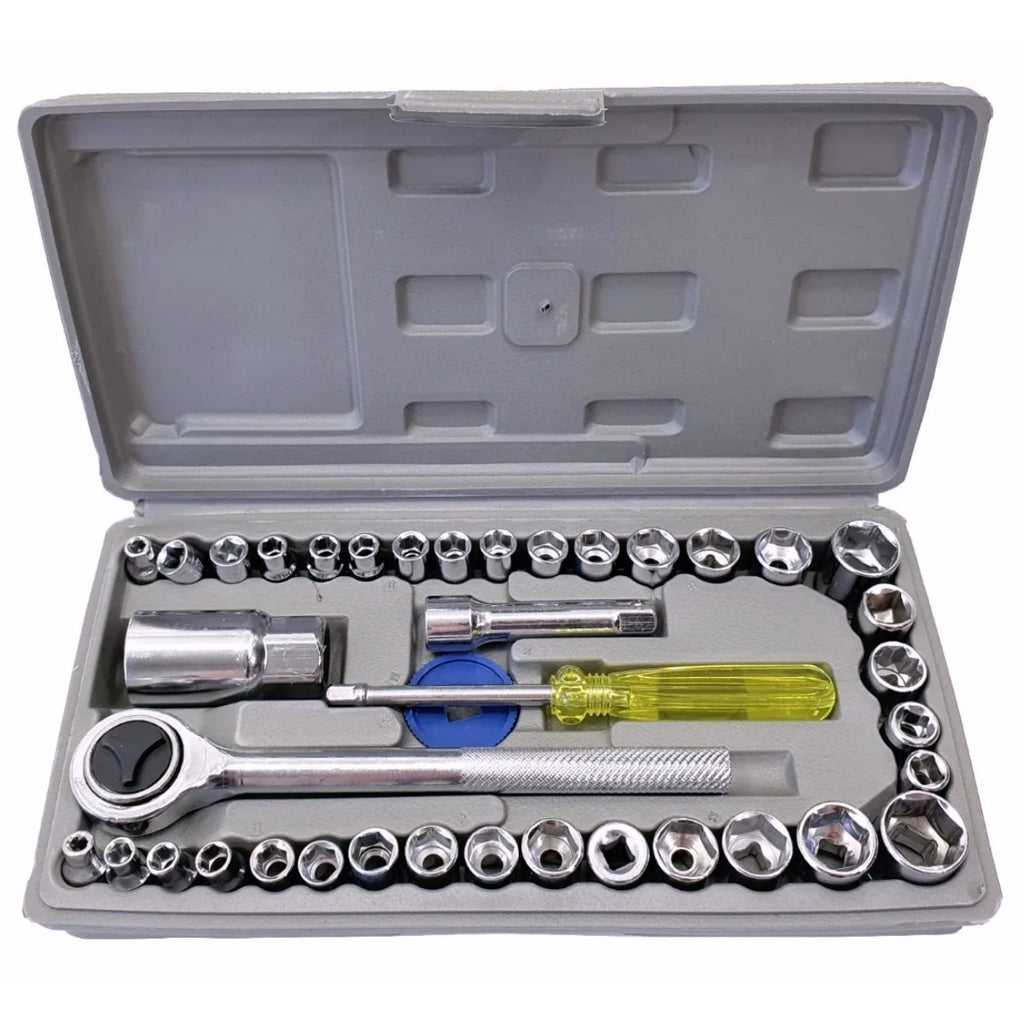 CINZA - Jogo De Ferramentas 40 Peças Soquetes c/ Maleta uso Automotível e Doméstico